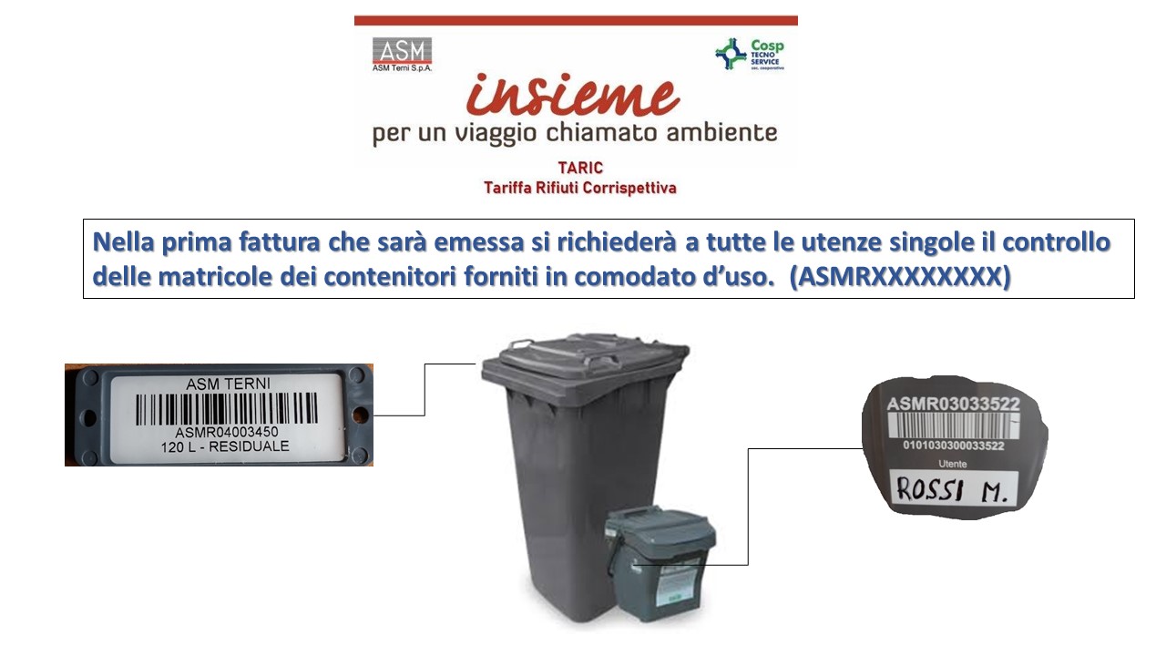 TARIC sarà fatturata dai Gestori RTI – ASM Terni S.p.A. & Cosp Tecnoservice s.coop.a r.l. così come avviene per qualsiasi altra utenza (luce, gas, acqua).